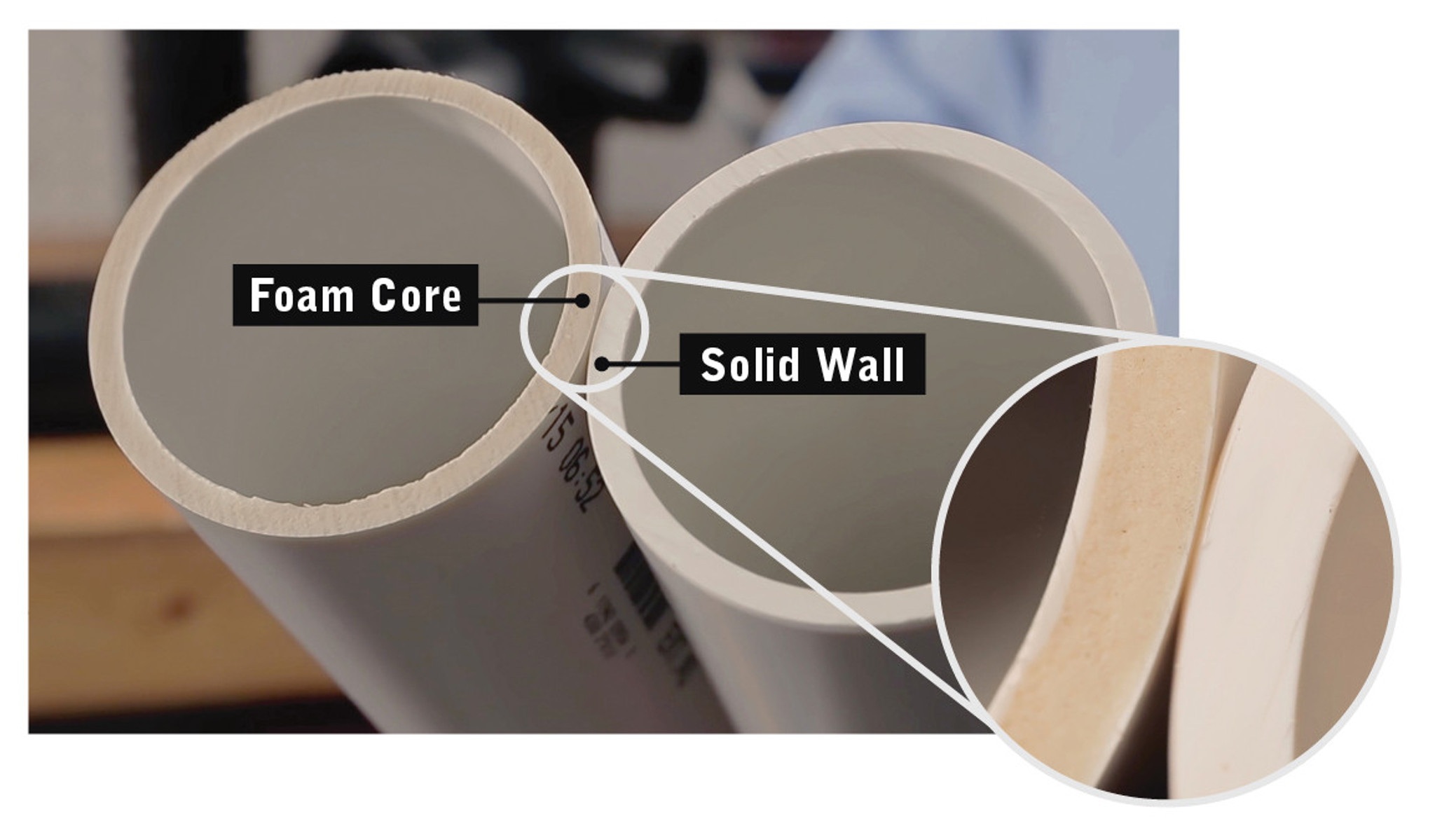 Foam core PVC’s lower density often translates to it being perceived as a “noisy” DWV pipe.